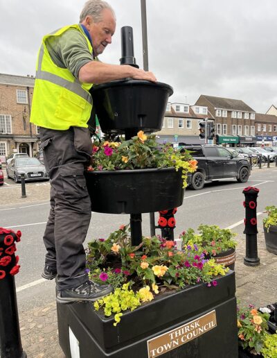 “Thirsk in Bloom” is a community-driven initiative in Thirsk, North Yorkshire, where residents and local groups work together to beautify the town through gardening and environmental projects. Led by the volunteer group “The Bloomers,” managed by the Thirsk Rotary Club, they plant and maintain flowers in the town center and surrounding areas. Funded by local councils, they replant twice yearly—spring/summer and autumn/winter—ensuring Thirsk stays vibrant and inviting year-round.